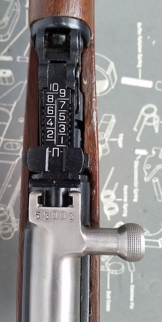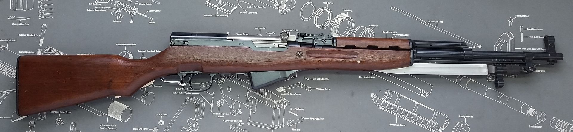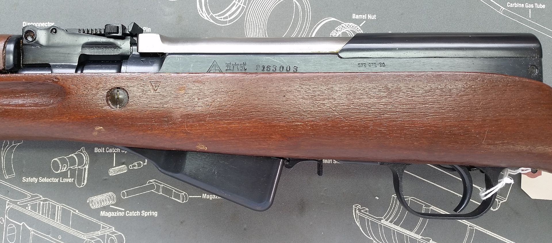 Only a handful or two of these early blade bayonet style Public Security Type-56 carbines came in with the limited deliveries to Kengs in the 1980s. Most are of the spike bayonet style, and can be seen in the following link.